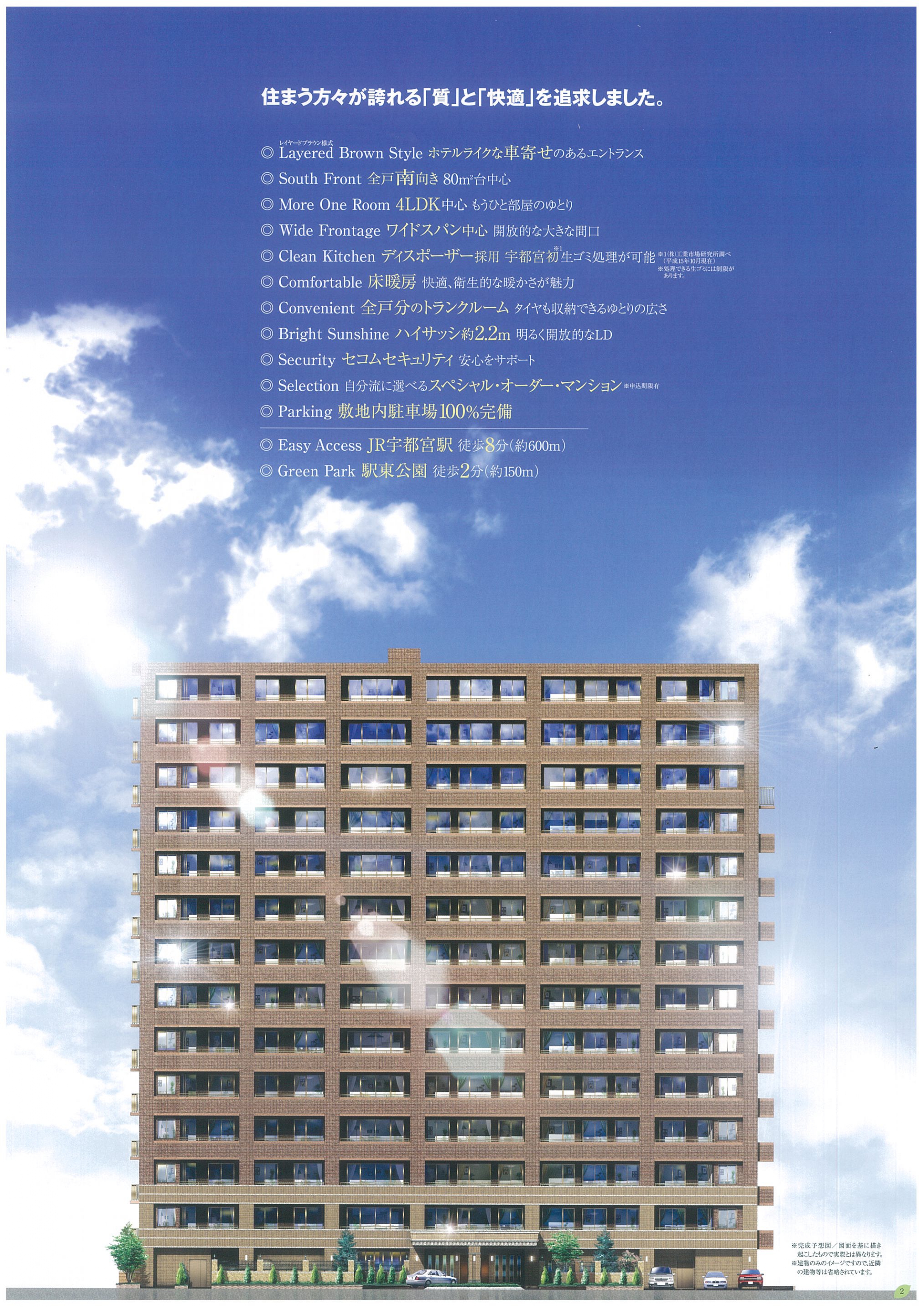 ※上記の内容は分譲当時のパンフレット内容を基に掲載しております。掲載している画像、素材などの情報は分譲当時、竣工時に作成、撮影したものになります。